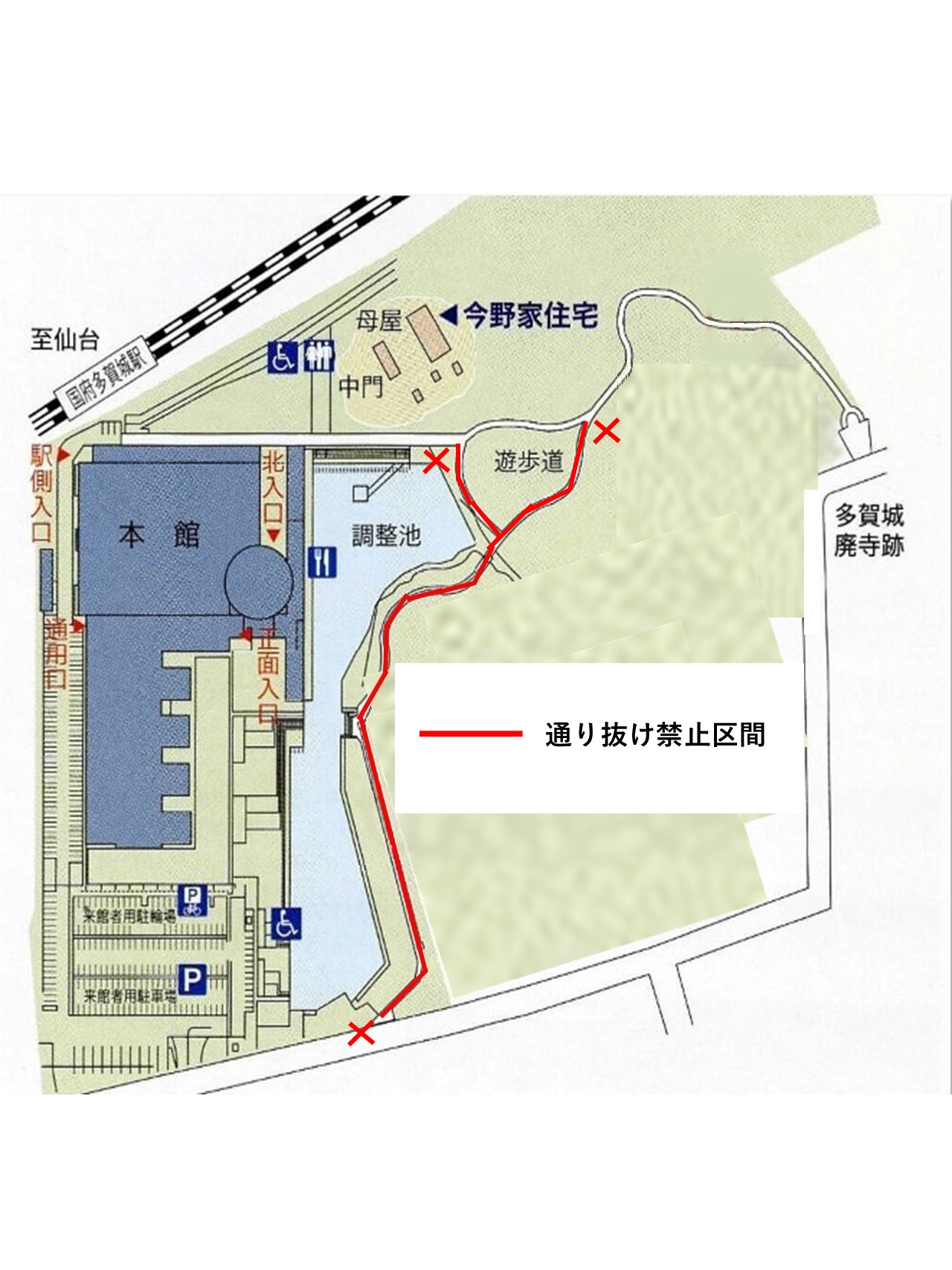 樹木伐採作業による遊歩道の通り抜け禁止について